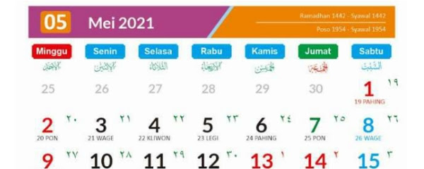 Libur Nasional Kalender 2021 Lengkap Dengan Tanggal Merah Kalender Mei 2021 Tanggalan Nasional Masehi Jawa Dan Hijriyah Prabu Blog Hari Libur Nasional Dan Cuti Bersama