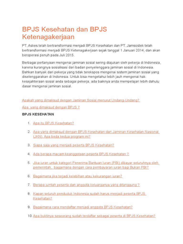 Jaminan Sosial Indonesia Bpjs Kesehatan Dan Bpjs Ketenagakerjaan