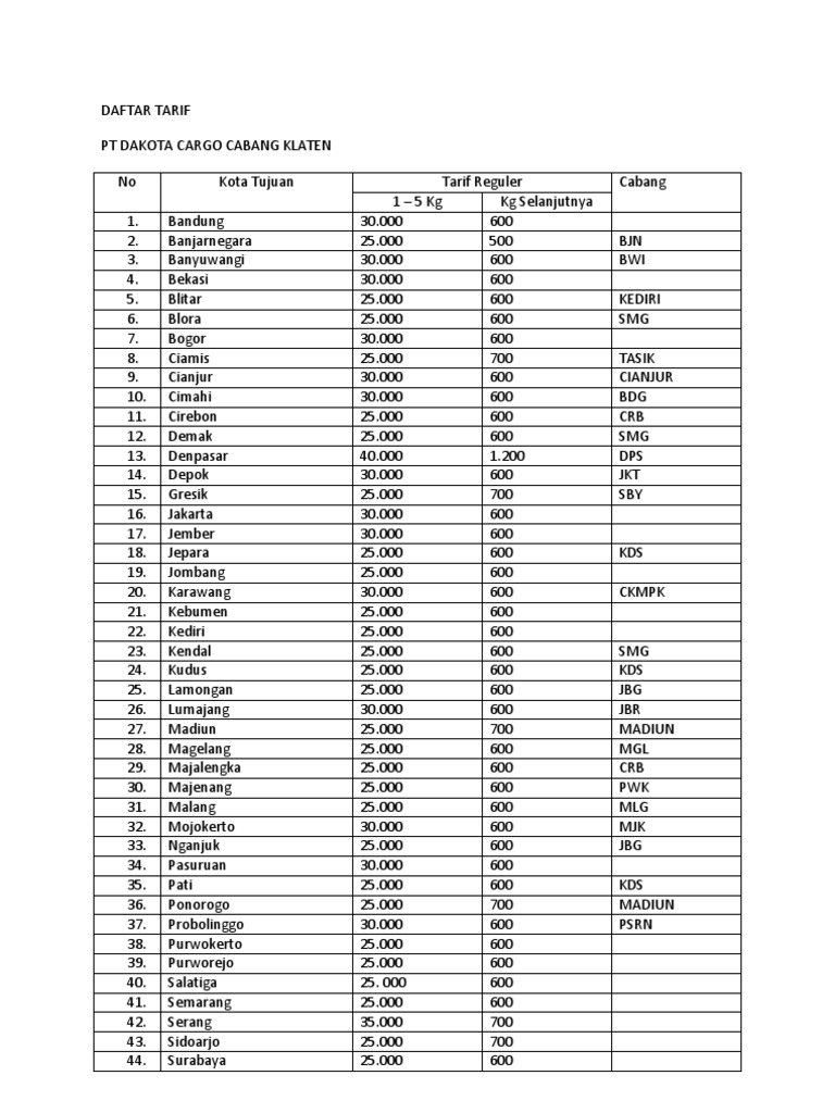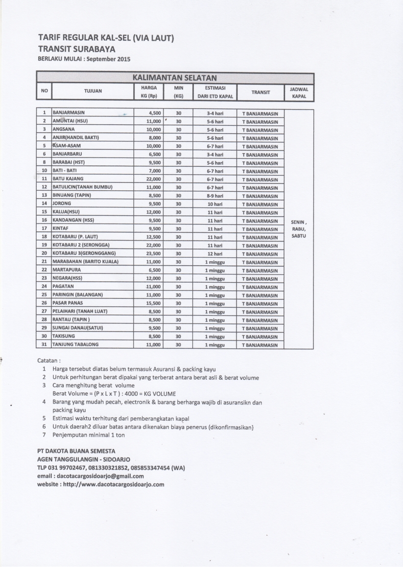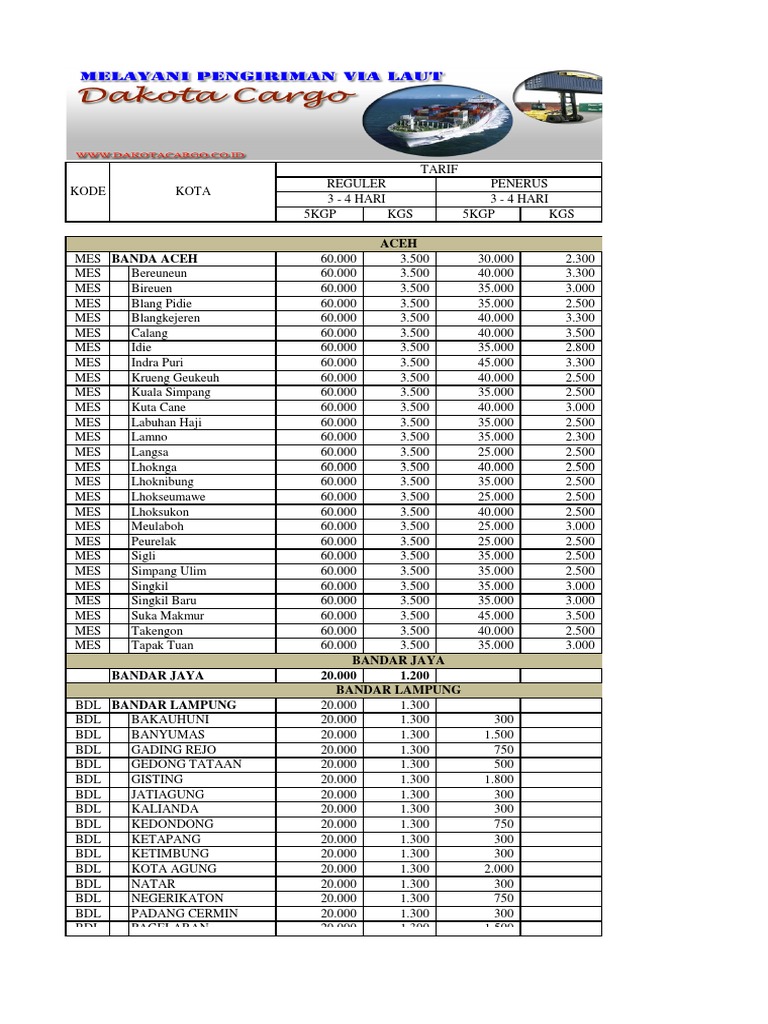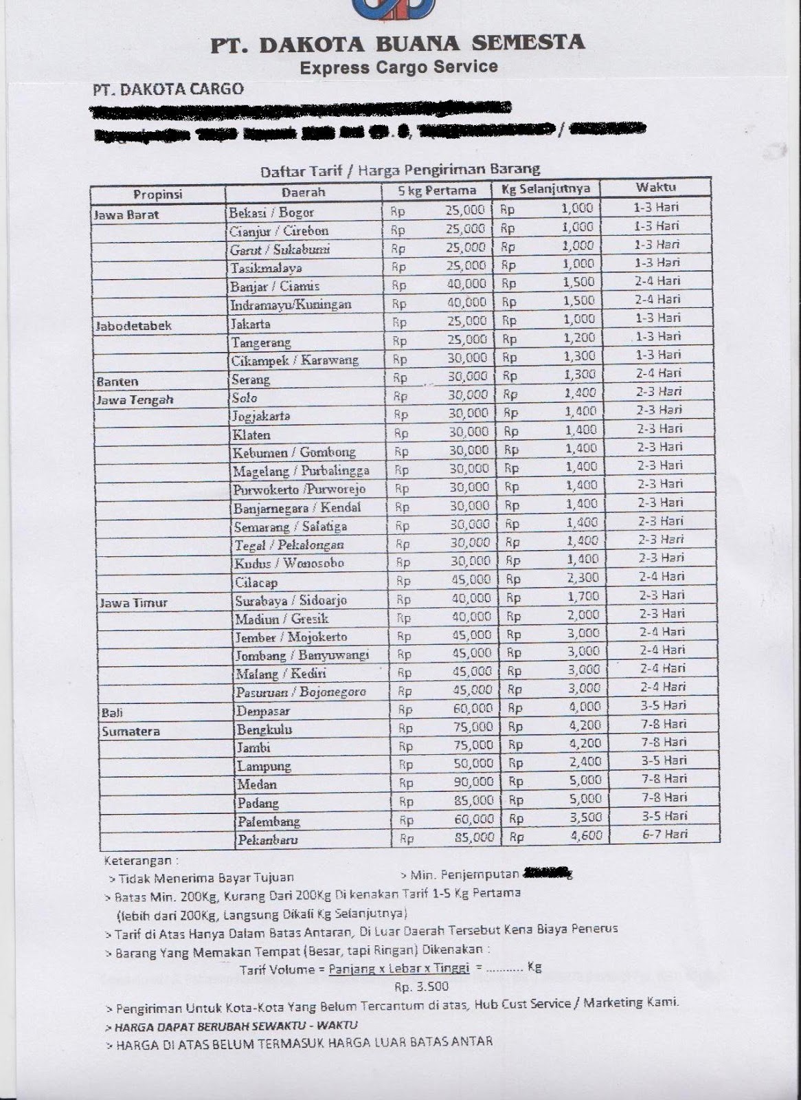 Tarif Harga Ongkos Kirim Dakota Kargo Ongkos Kirim Carapedia