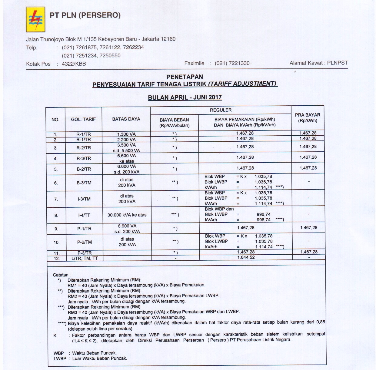 Daftar Tarif Dasar Listrik Pln 2017 Karang Taruana Mahameru Rt 15