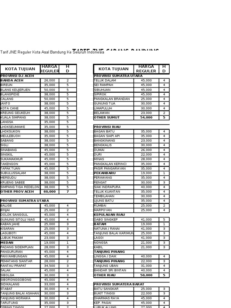 Tarif Ongkos Kirim Jne Reguler Ongkoskirimjne