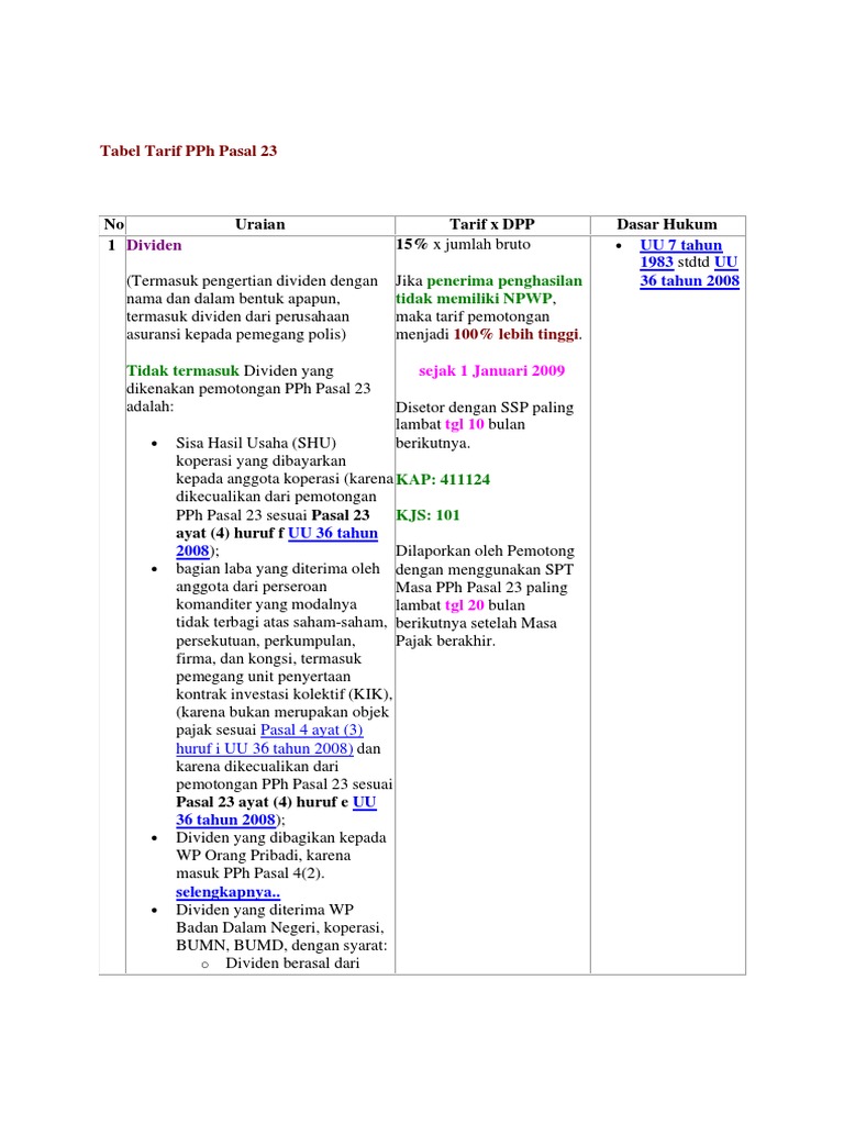 Tabel Pph Pasal 23