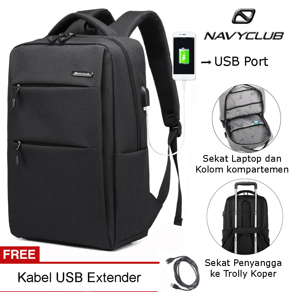 Tas Navy Club Usb Charger Hitam Fesyen Pria Tas Dompet Ransel Di Carousell