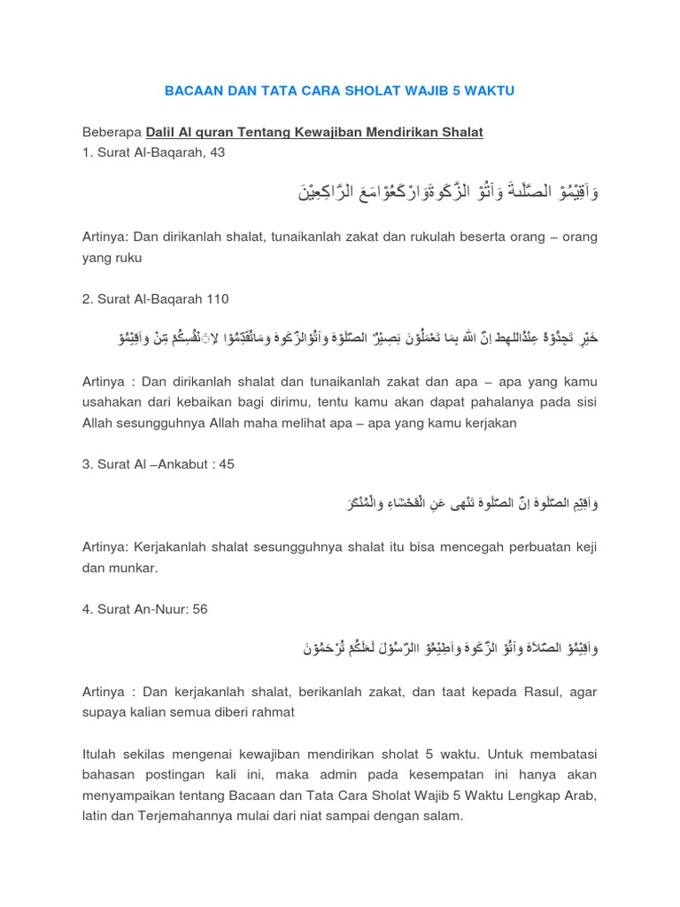 Bacaan Lengkap Shalat Wajib Tulisan Latin Serta Tata Cara Shalat Yang Benar Kata Ilmu
