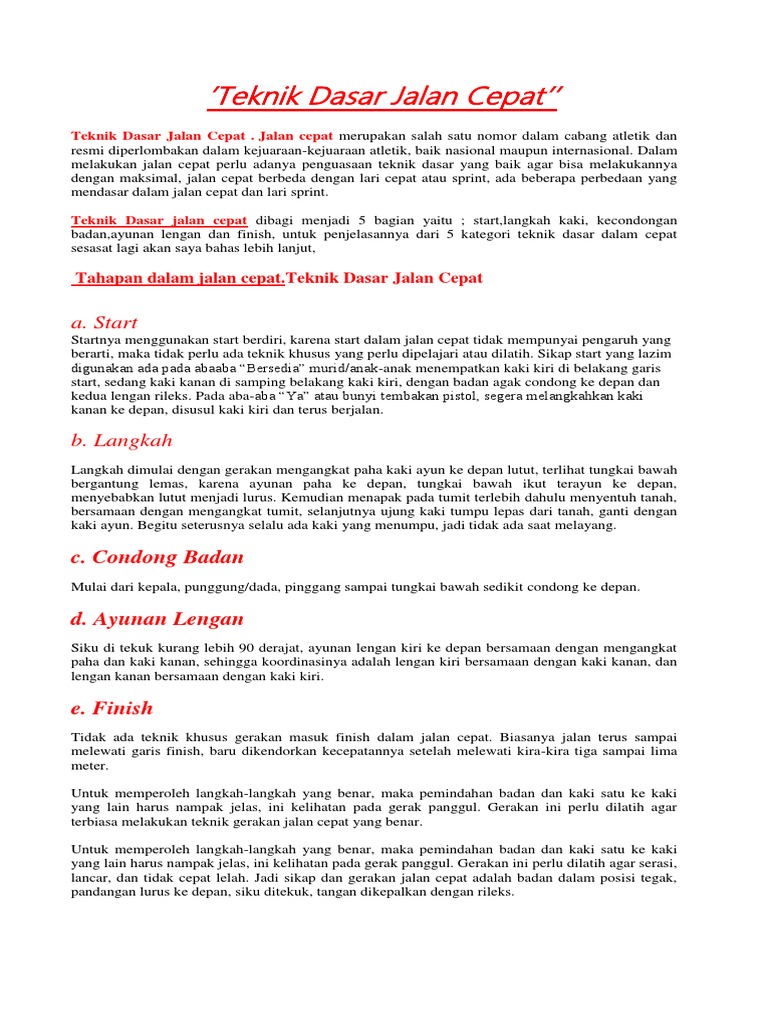 Jalan Cepat Teknik Belajar Keterampilan Dasar Jalan Cepat Penjaskes Co Id