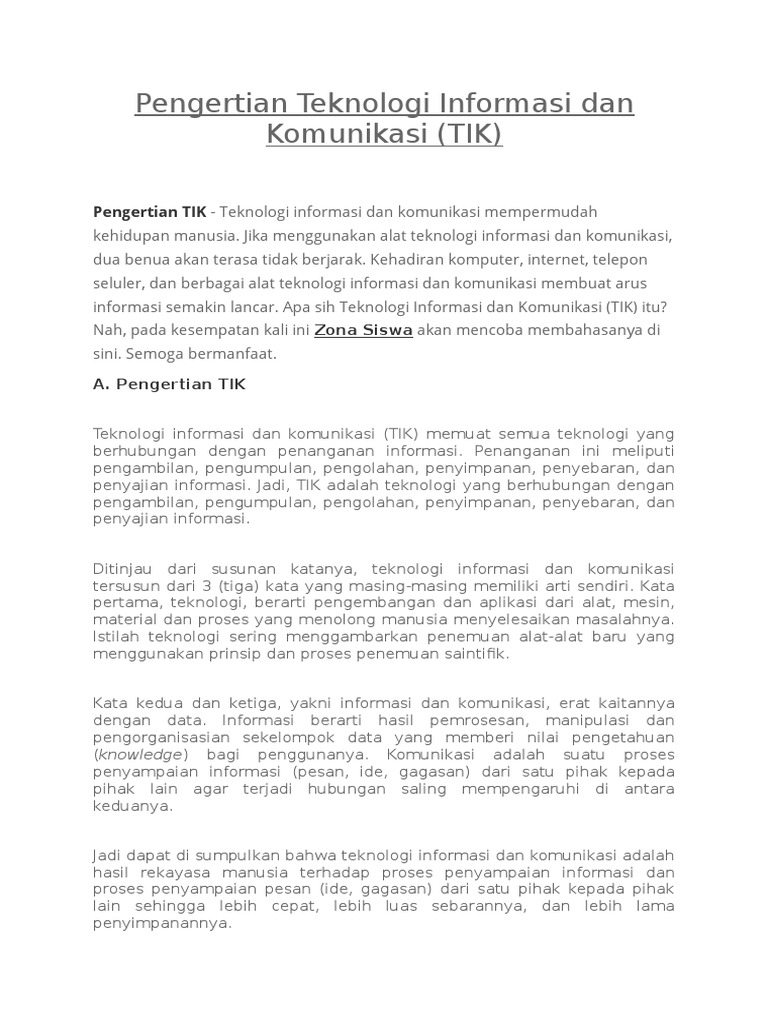 Pengertian Tik Sejarah Manfaat Dan Perkembangan Selamatpagi Id