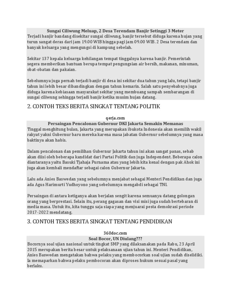 15 Contoh Teks Berita Singkat Tentang Pendidikan Banjir Dll 5w 1h Salamadian