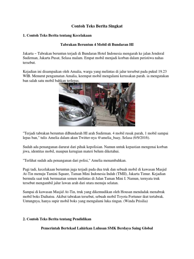 Contoh Teks Berita Singkat Yang Mengandung Unsur 5w1h Contoh Resource