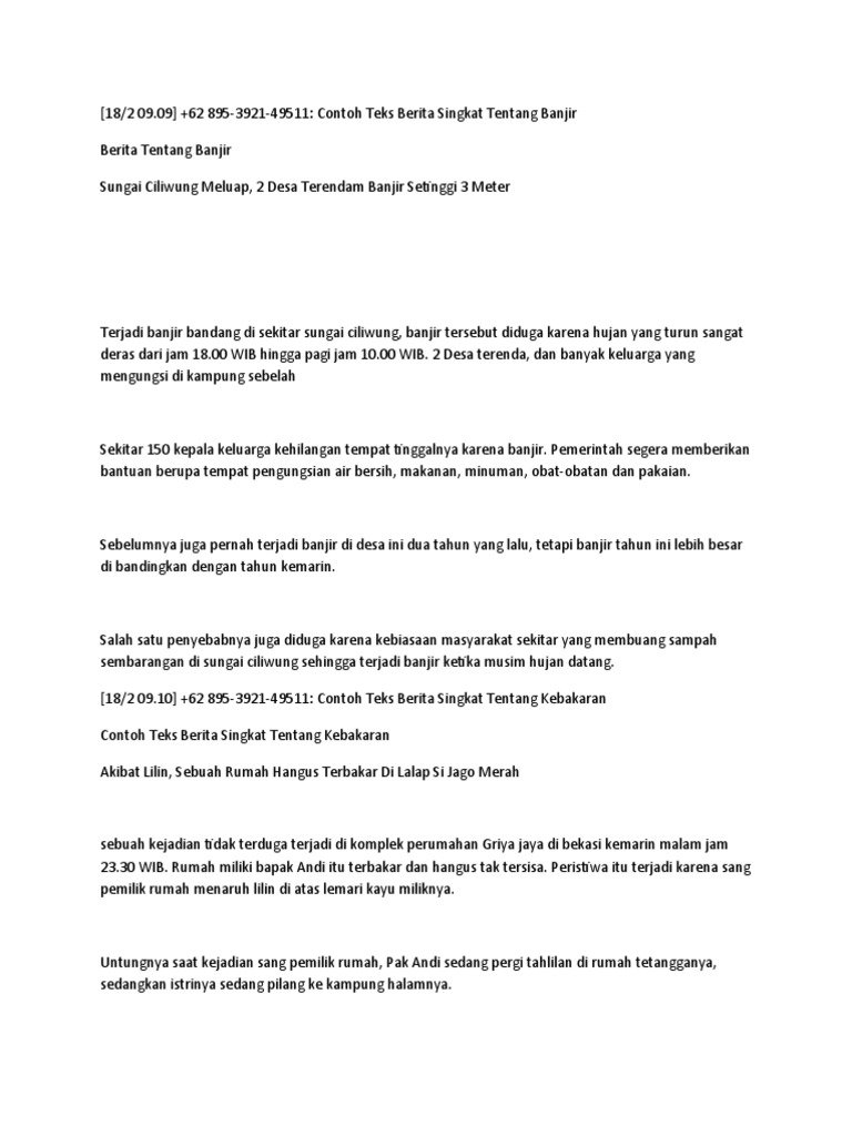 Contoh Teks Berita Tentang Banjir Pendidikan Kecelakaan Kebakaran Dll