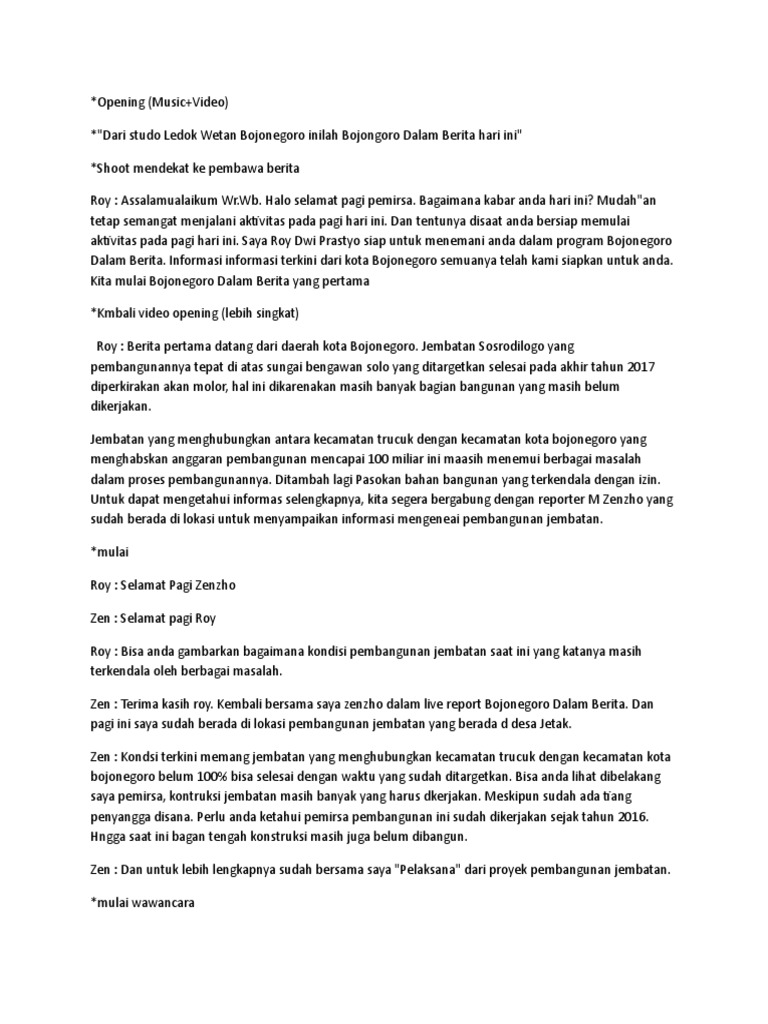 Contoh Teks Pembawa Berita Dan Reporter Berita Terbaru