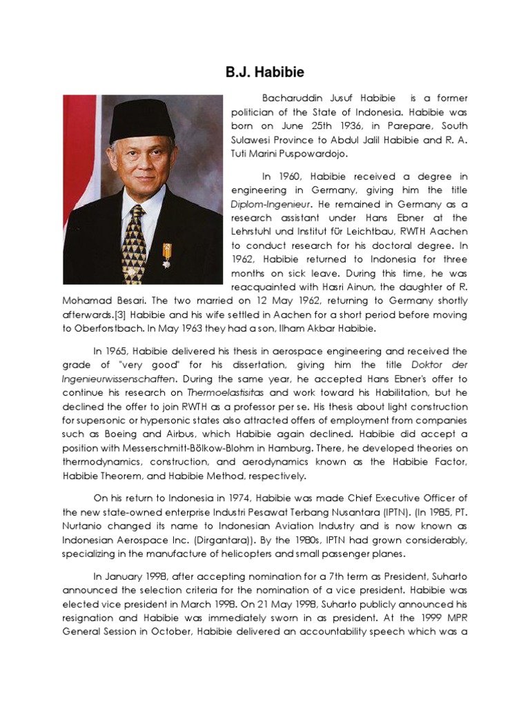 Biografi Bj Habibie Dalam Bahasa Inggris Brainly Co Id