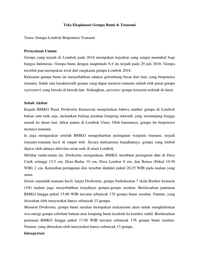 Teks Eksplanasi Gempa Aceh Pembahasan Pernyataan Umum Penjelas Dan Interpretasi Ringtimes Banyuwangi