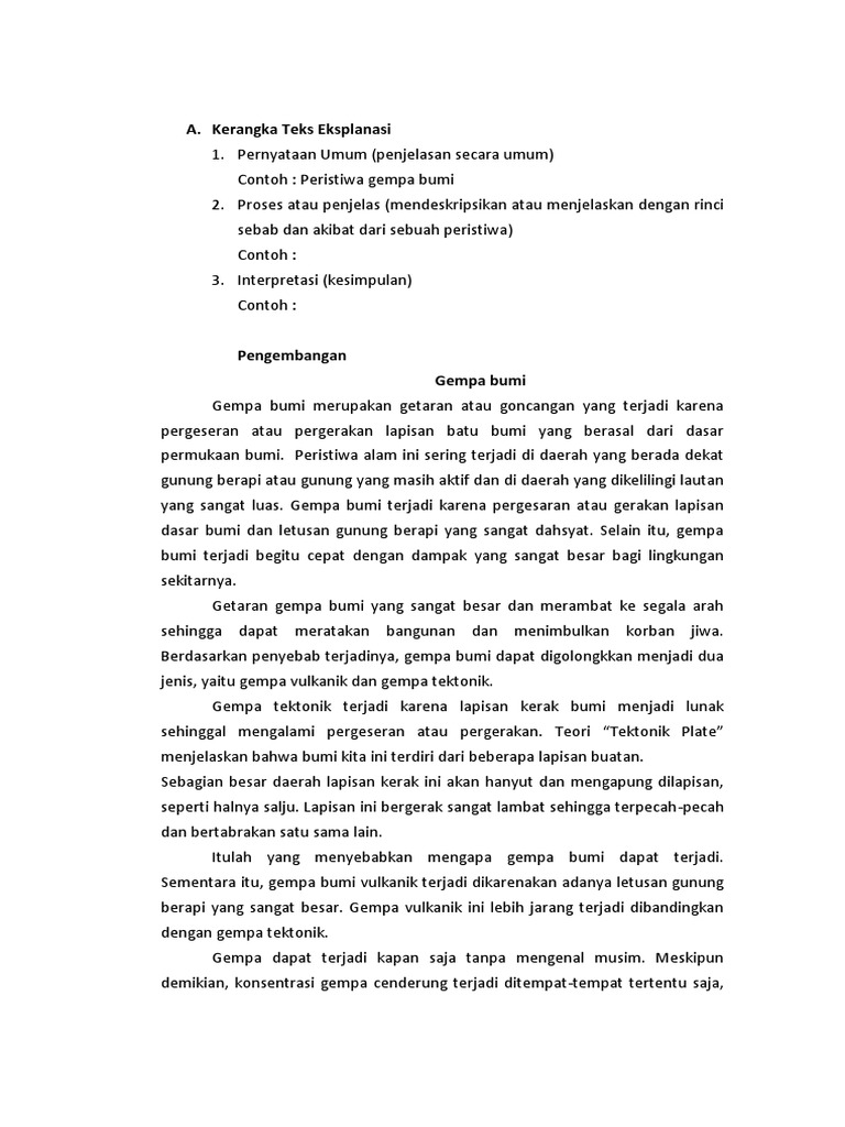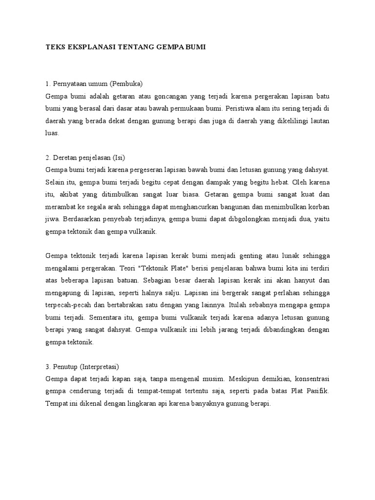 Tentukan Strukrur Teks Eksplanasi Si Atas Gempa Bumi