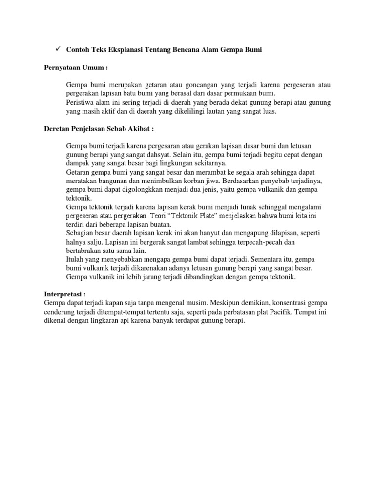 Contoh Teks Eksplanasi Tentang Gempa Bumi Mosaicone