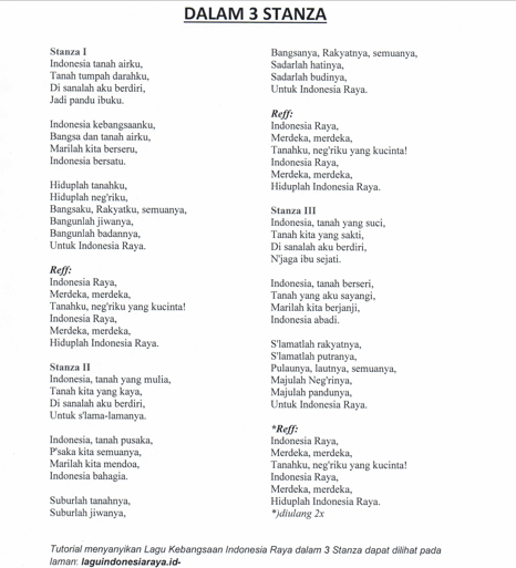 Gambar Lirik Lagu Indonesia Raya Stanza 1 2 Dan 3