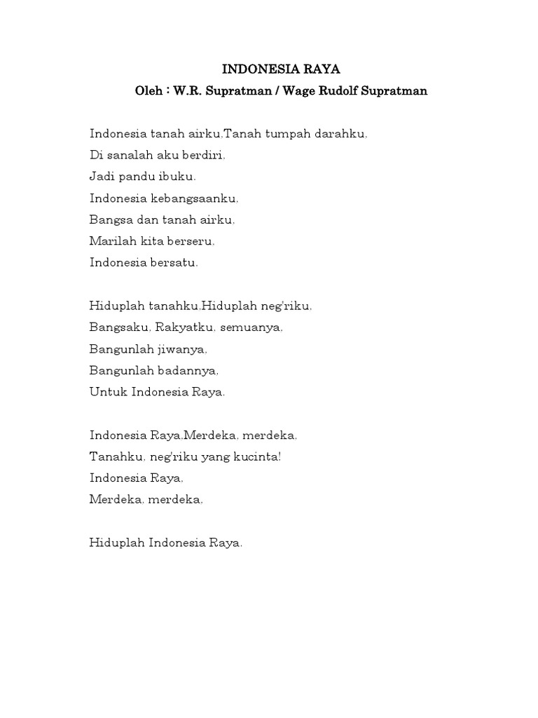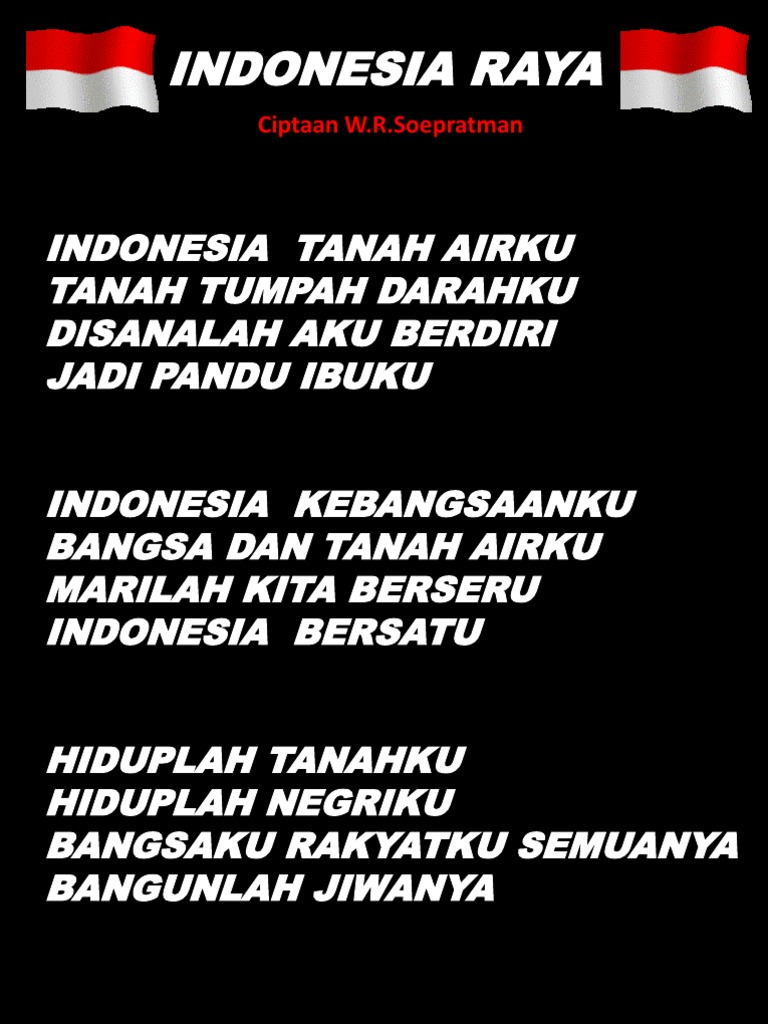 Lirik Lagu Indonesia Raya Cipt Wr Supratman Song Lyrics