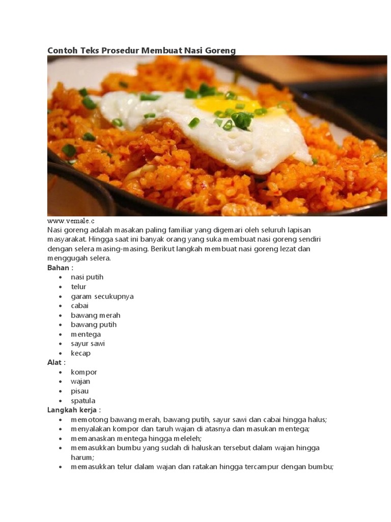 Buatlah Struktur Teks Prosedur Cara Memasak Nasi Goreng Pada Teks Di Atas
