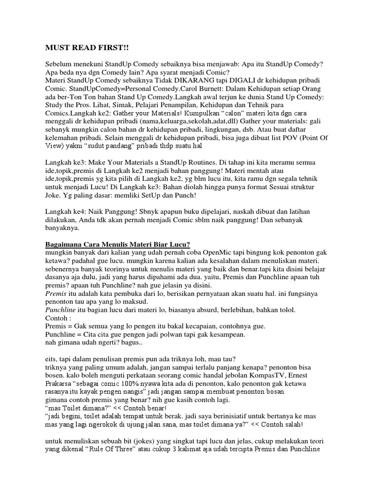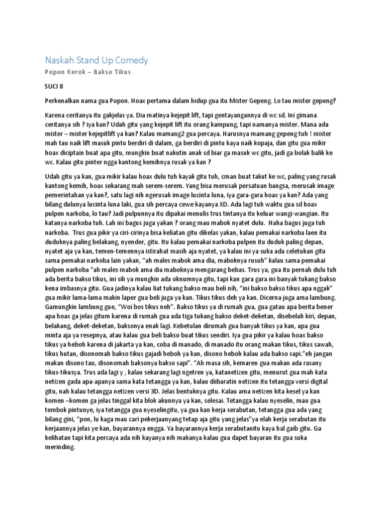 Stand Up Comedy Bahasa Indonesia Teks Anekdot Lucu Di Muka Youtube