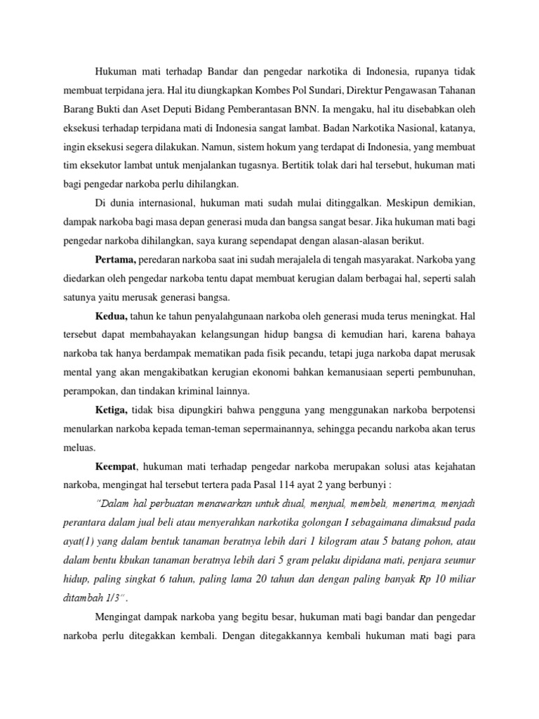 Argumen Menentang Teks Tantangan Hukuman Mati Bagi Pengedar Narkoba Brainly Co Id