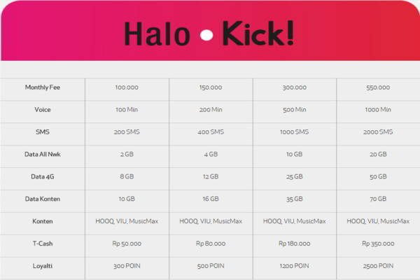 4 Jenis Paket Halo Kick Harga Dan Cara Mengaktifkannya