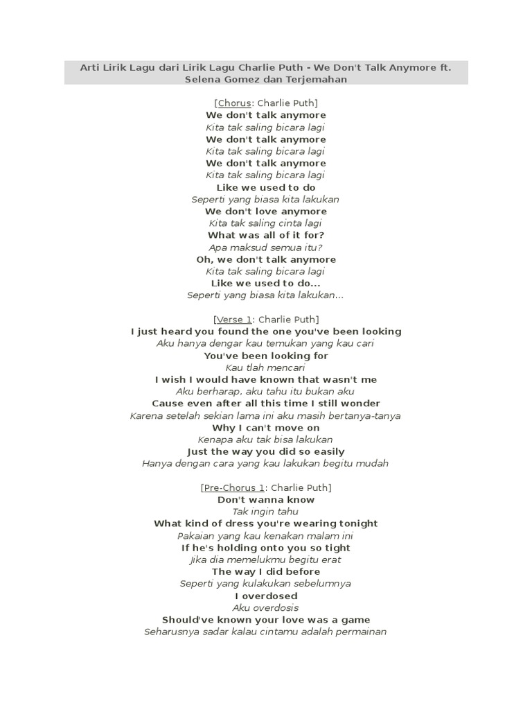 Teks Lagu We Dont Talk Anymore Berbagai Teks Penting