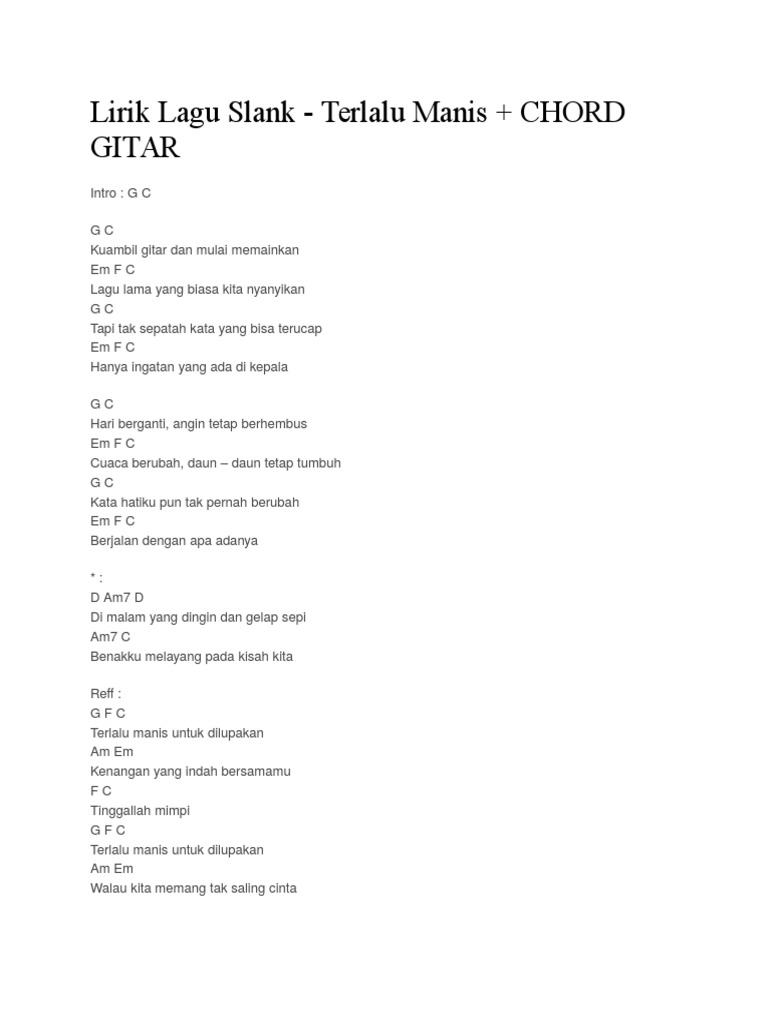 Chord Gitar Lirik Lagu Slank Terlalu Manis Abadikini Com