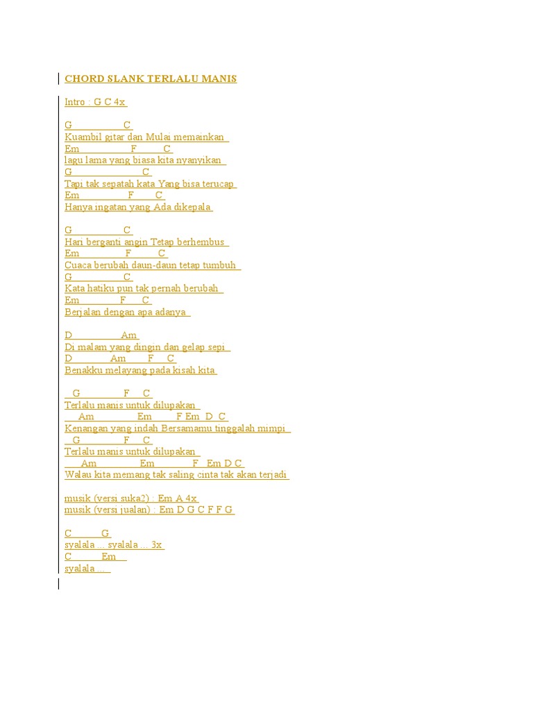 Chord Kunci Gitar Slank Terlalu Manis Lamanqu Id