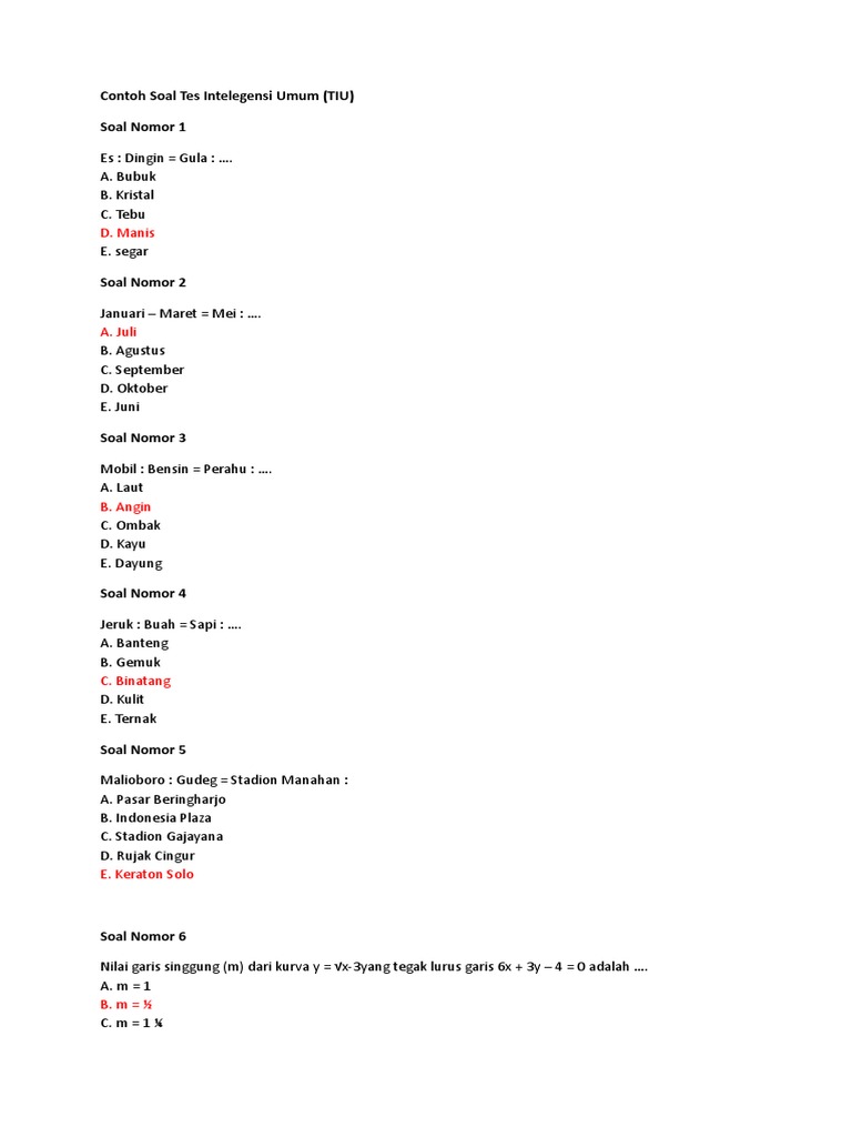 Soal Tes Cpns Kategori Tes Intelegensi Umum Bank Soal Tes Terlengkap