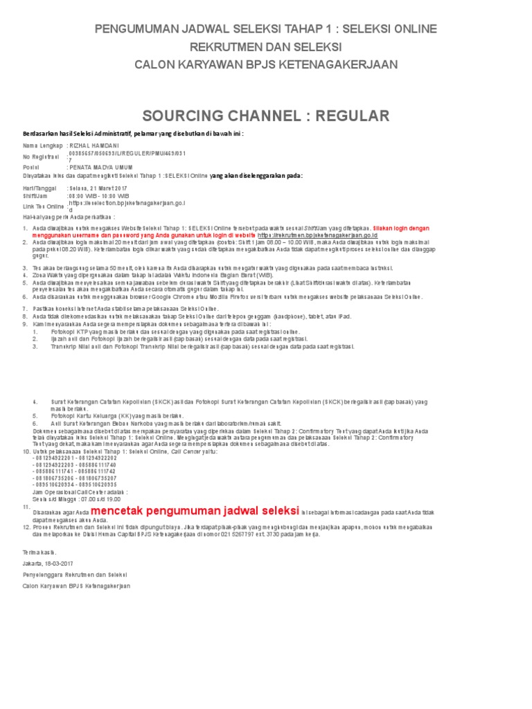 Pengalaman Mengikuti Rekrutmen Bpjs Ketenagakerjaan Pdfcoffee Com
