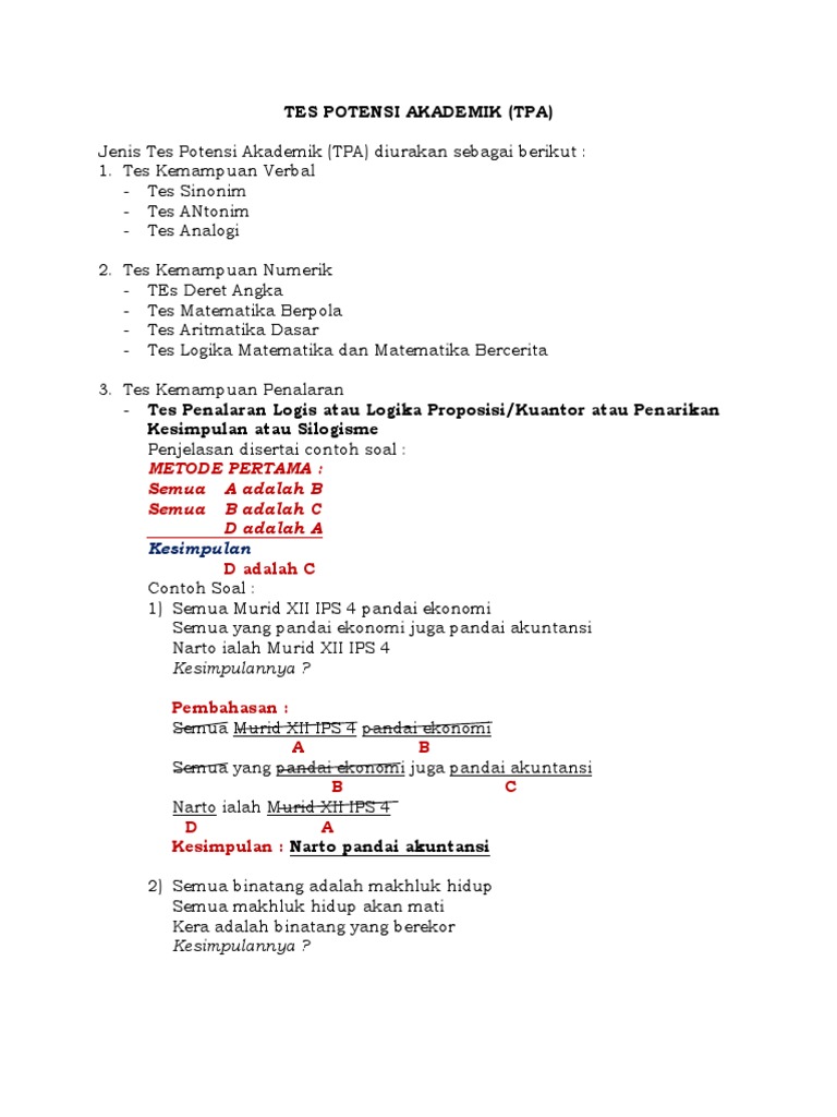 Jenis Jenis Soal Tes Potensi Akademik Tpa Dan Fungsinya