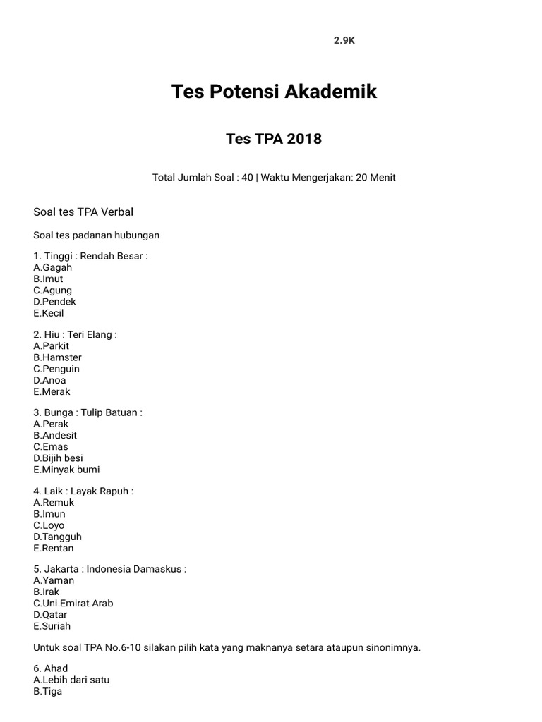 Soal Tpa Tes Potensi Akademik Dlya Android Skachat Apk