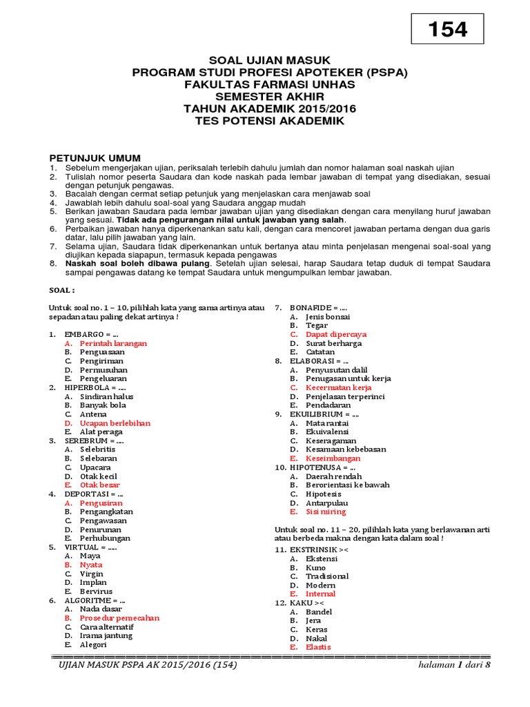 Soal Tes Potensi Akademik Spmb Ptain Hanya Di Buku On Line Com Tes Potensi Akademik Soal