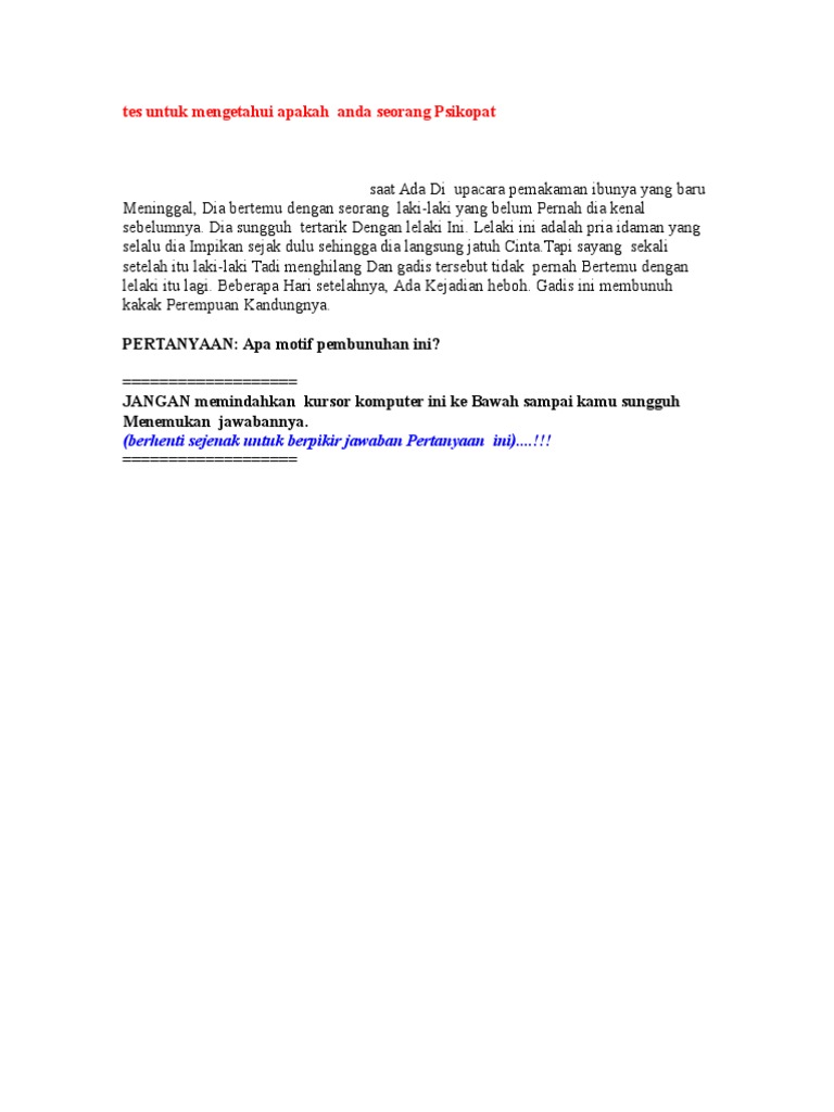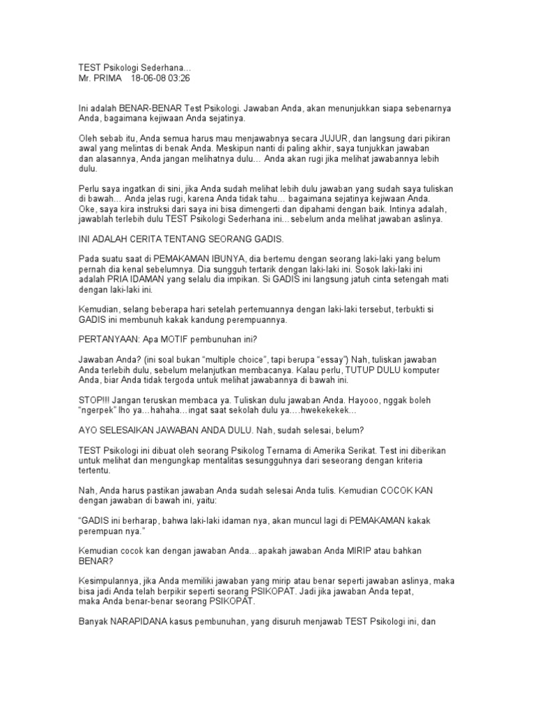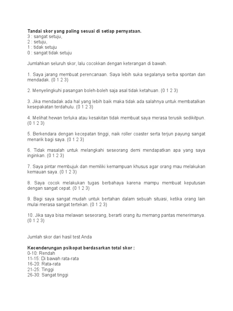 Tes Psikopat Online Lengkap Jawaban Jalantikus