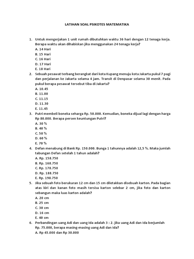 Contoh Soal Psikotes Matematika Dan Jawabannya Pdf