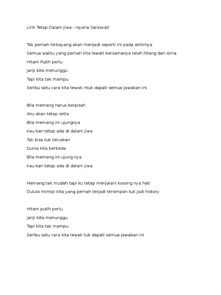 Lirik Lagu Tetap Dalam Jiwa Isyana Sarasvati Lirik Lagu Populer