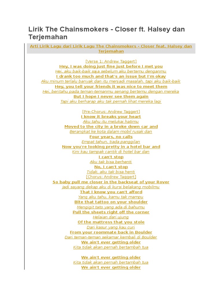 Lirik Lagu Barat Terbaru The Chainsmokers Closer Feat Halsey Wattpad