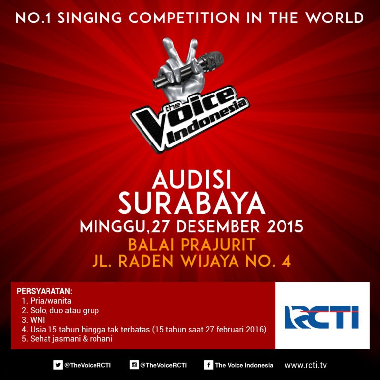 Rcti Pa Twitter Halo Surabaya Yukk Ikuti Audisi The Voice Indonesia Di Surabaya Catat Waktu Tempatnya Yaa Https T Co Ekysjj2qeu