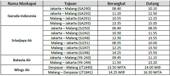 Harga Tiket Pesawat Rute Jakarta Malang 2015 Daftar Harga Tarif