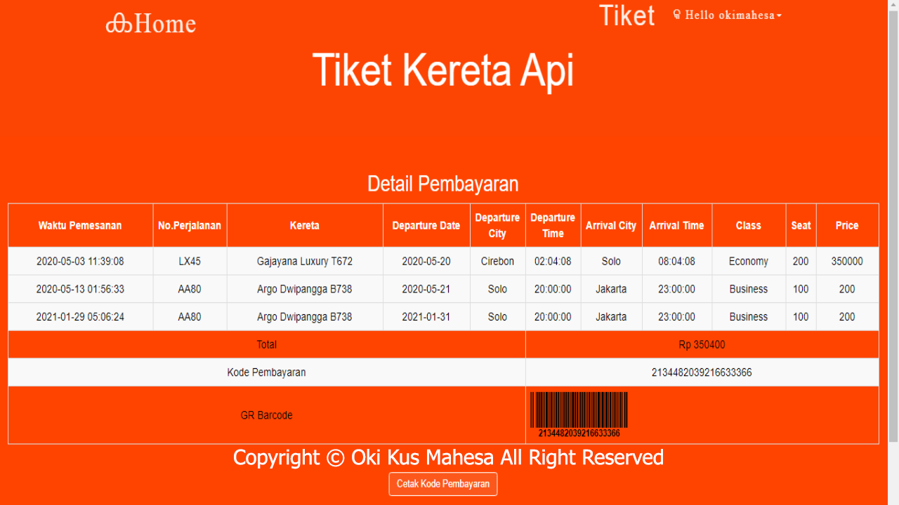 Penjualan Tiket Kereta Api Online Okari Multipayment