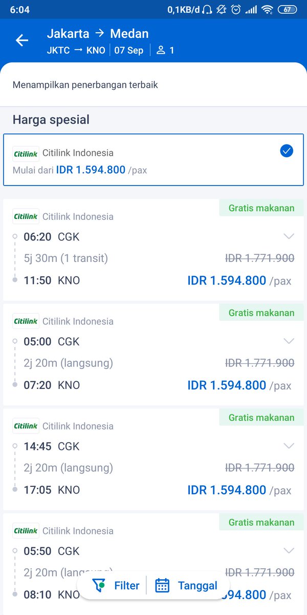 Tiket Com Auf Twitter Sesuai Dengan Informasi Yang Kamu Berikan Untuk Pemesanan Tiket Pesawat Menggunakan Maskapai Citilink Dengan Rute Jakarta Medan Tanggal 7 September 2019 Terdapat Beberapa Pilihan Yang Dapat Kamu Pesan