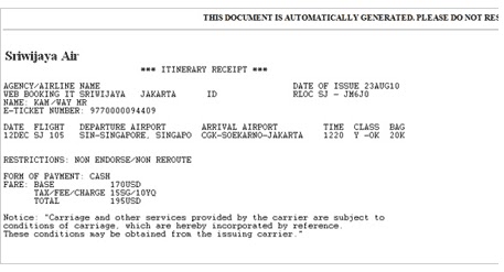 Contoh Tiket Elektronik Sriwijaya Air E Ticket Sriwijaya Air Sriwijaya Air Informasi Harga Tiket Booking Promo Online Jadwal Tiket Passenger Pesawat