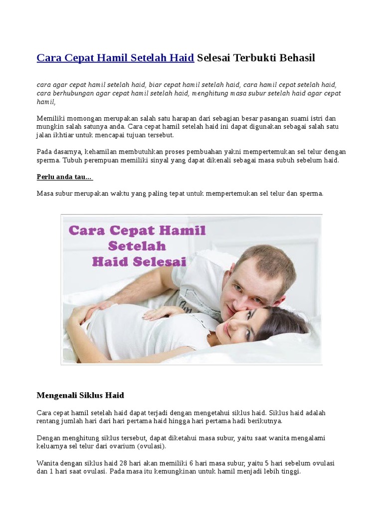 Cara Cepat Hamil Setelah Haid Selesai Aqiqah Madenah 0878 8346 9070