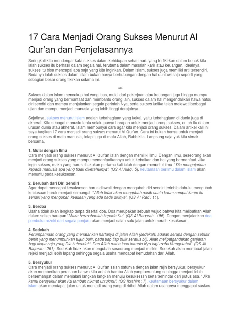 Cara Menjadi Orang Sukses Menurut Al Qur An Dan Sunnah Id Pengertian
