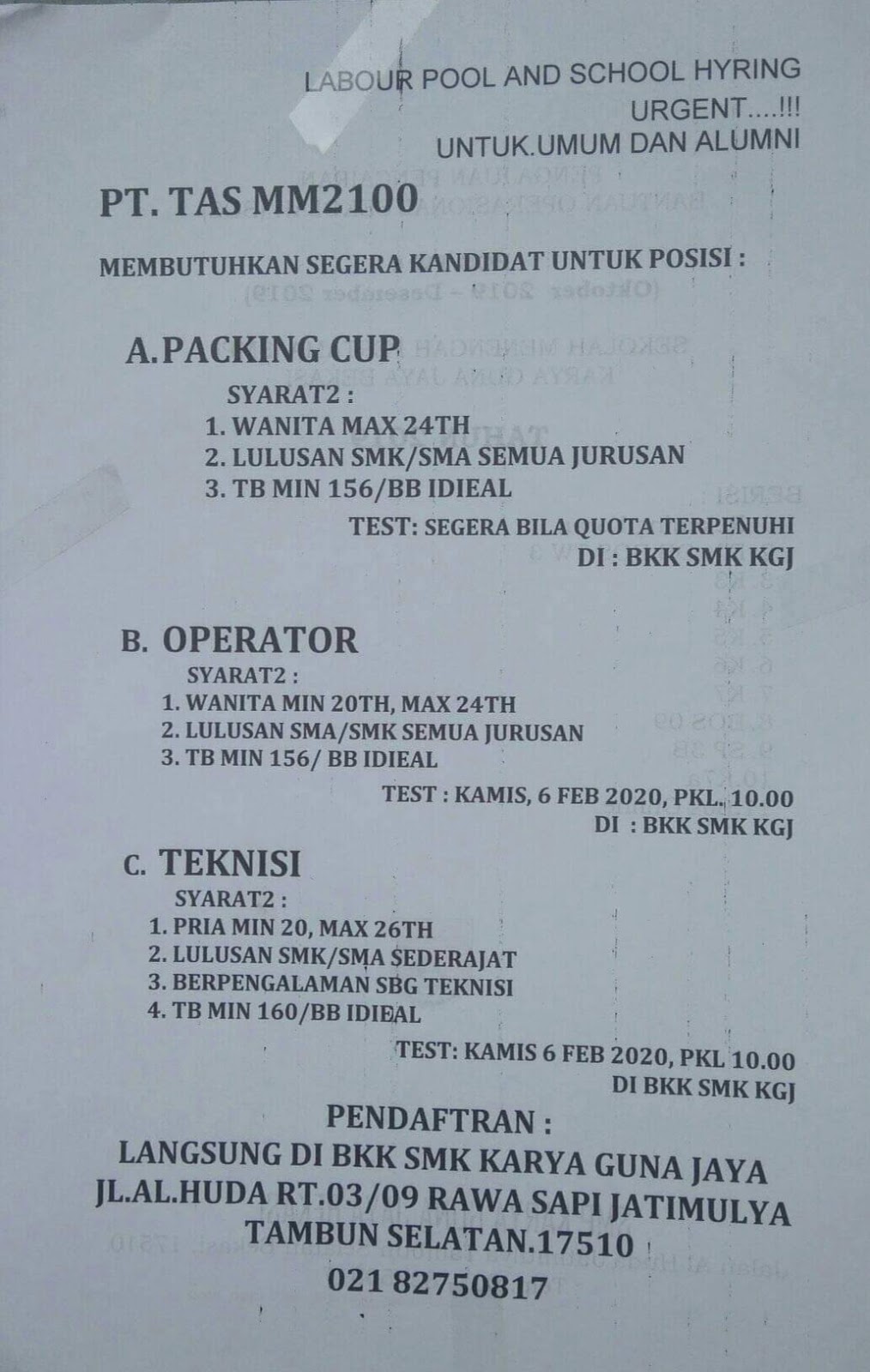 Lowongan Kerja Pt Tirta Alam Segar Mm2100 Pt Mas Lupy Hakim