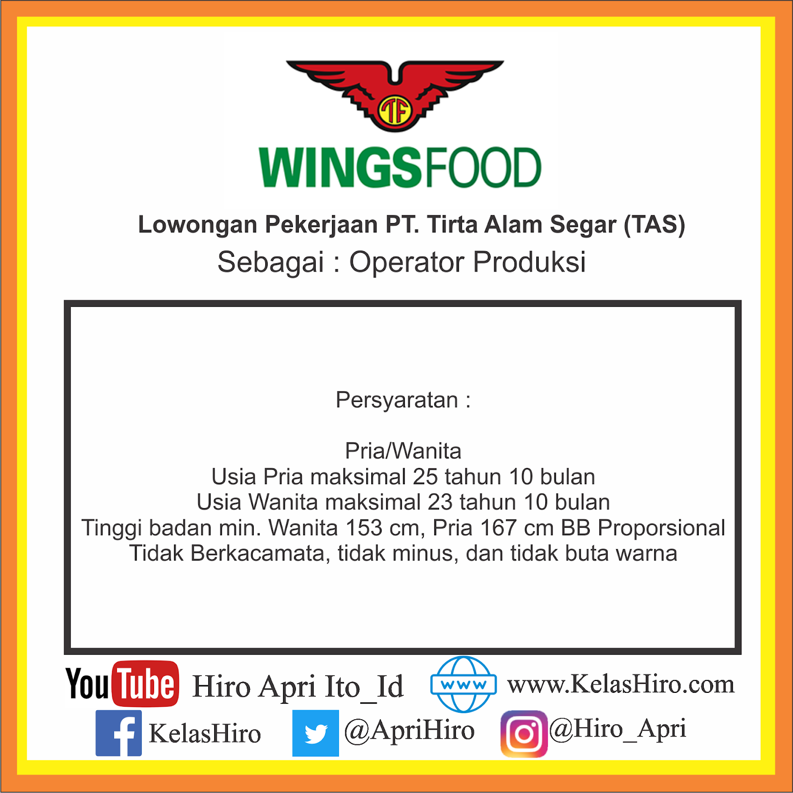 Lowongan Kerja Pt Tirta Alam Segar Wings Food 2021
