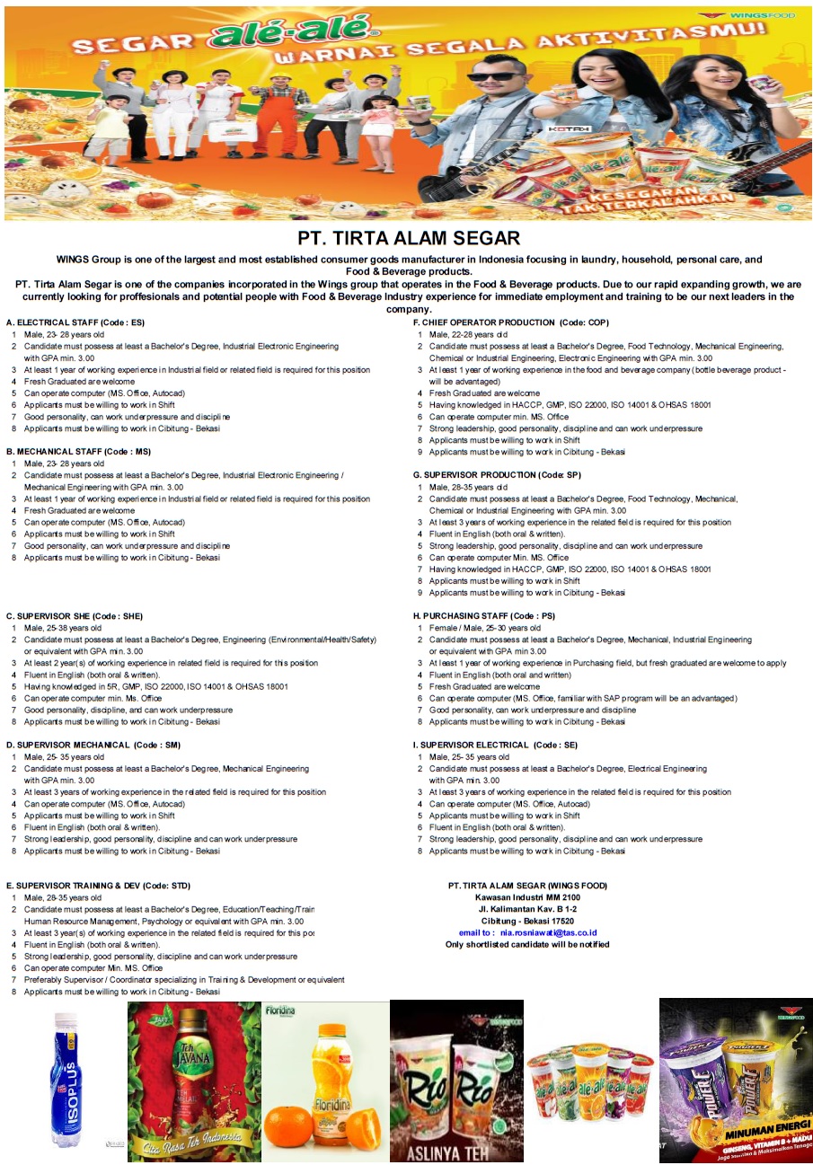 Lowongan Kerja Untuk Tingkat Sma Smk D3 S1 Pada Pt Tirta Alam Segar Tas Wings Group Jobs Indobox