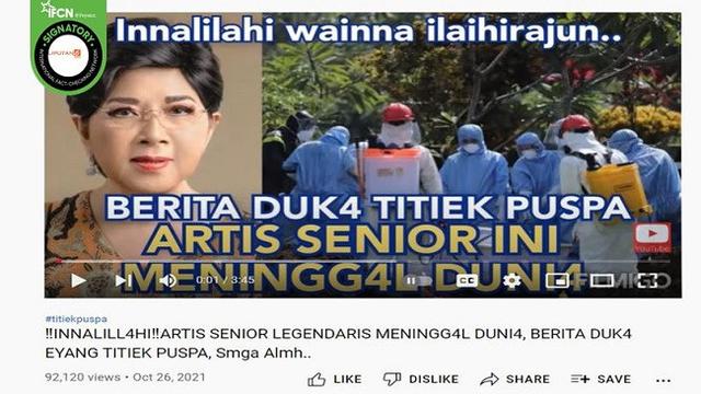 Cek Fakta Hoaks Kabar Titiek Puspa Meninggal Dunia Pada 26 Oktober 2021 Cek Fakta Liputan6 Com