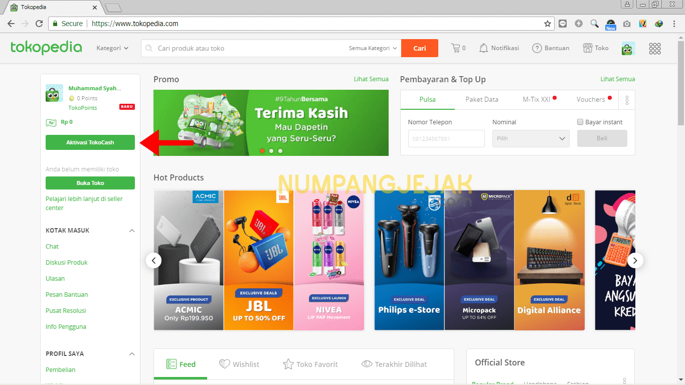 Cara Mengaktifkan Fitur Tokocash Di Akun Tokopedia