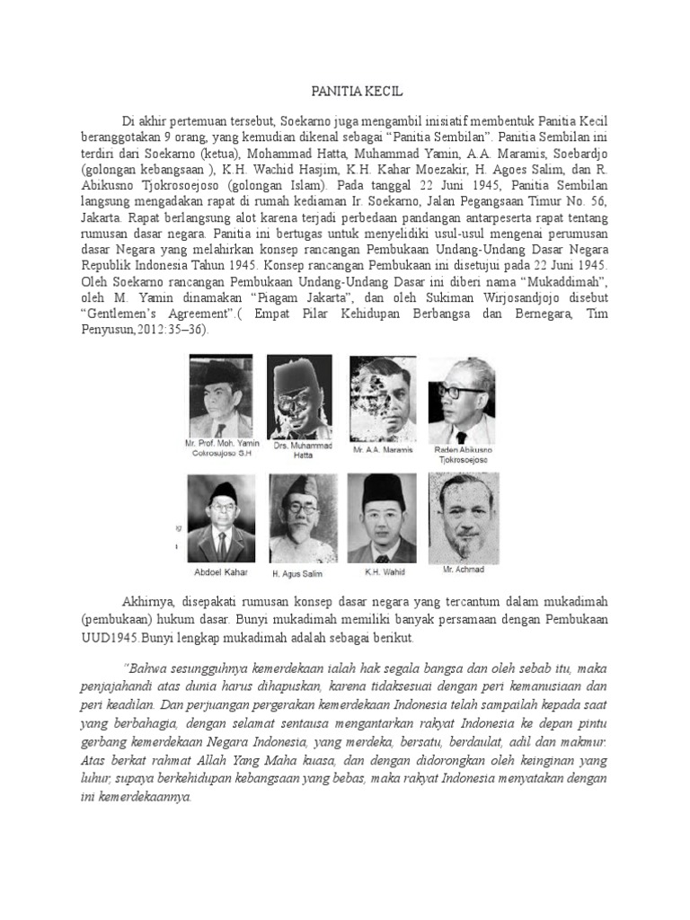 Siapa Saja Anggota Panitia Kecil Yang Dibentuk Soekarno Dan Apa Bunyi Lengkap Mukadimah Pembukaan Hukum Dasar Ppkn Smp 123
