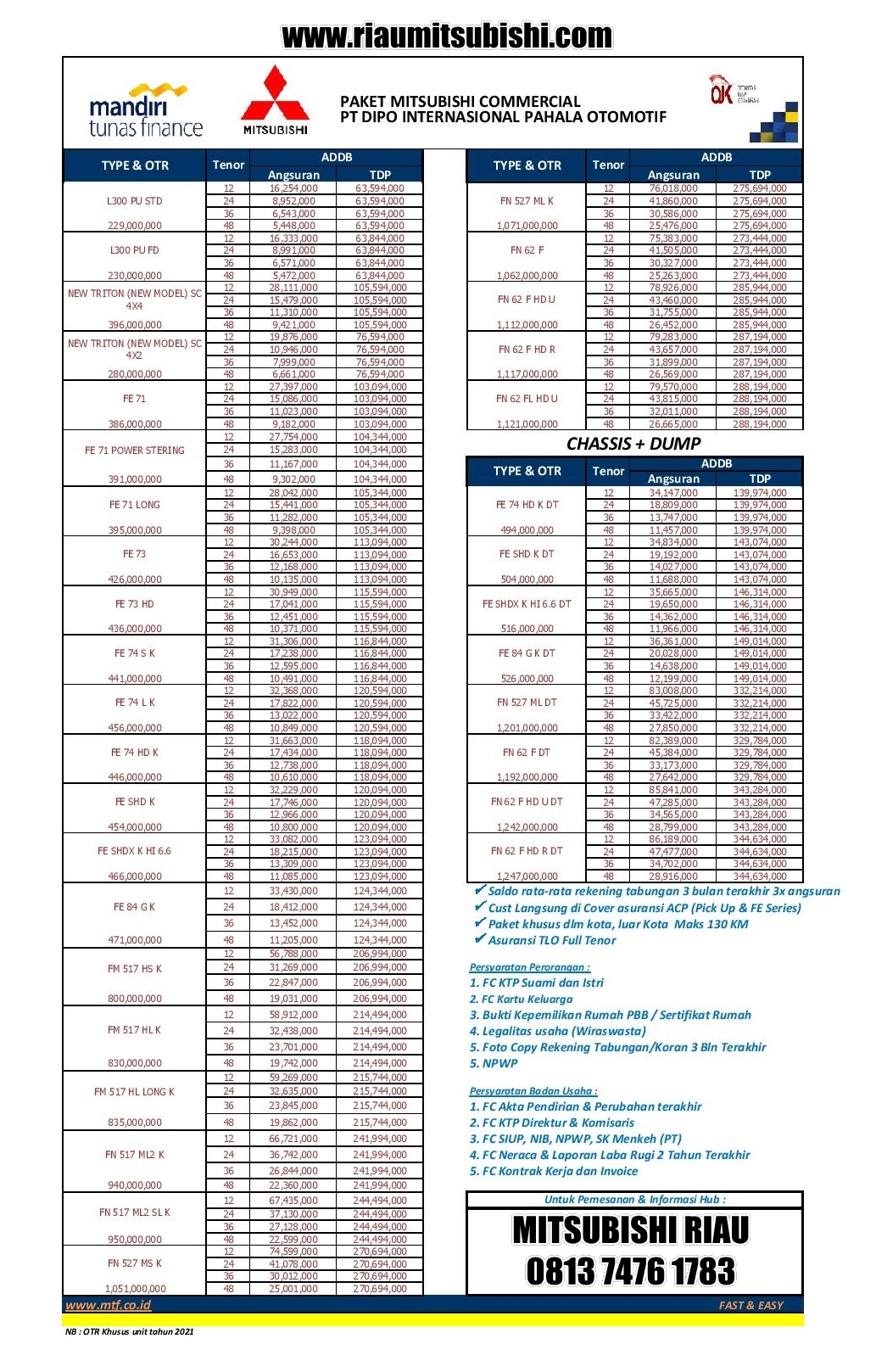 Paket Kredit Terbaru Mitsubishi Truck Series Via Mandiri Tunas Finance Pekanbaru Riau Info Mitsubishi Online Terbaru Terpercaya